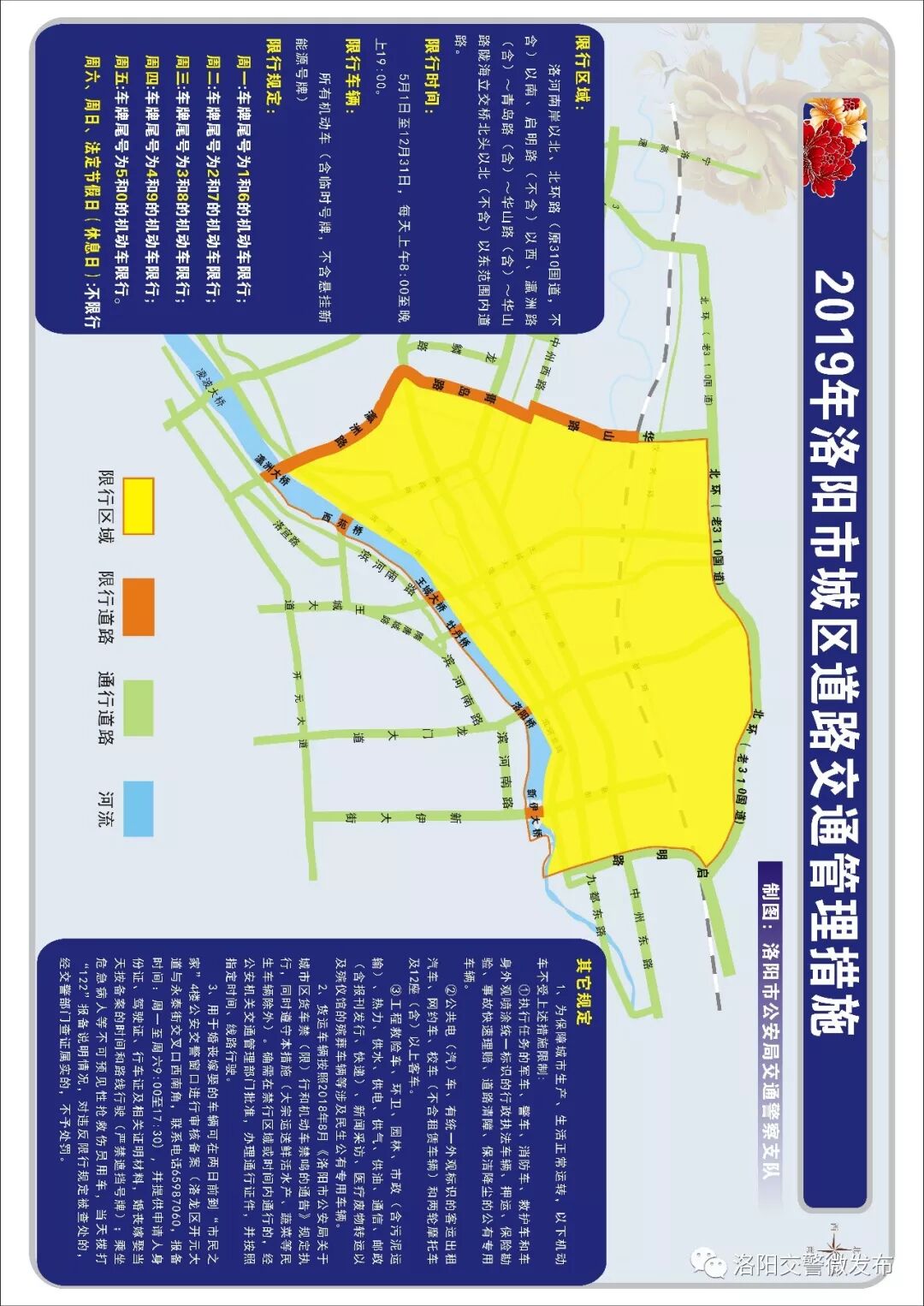 当前,我市大气污染防治面临严峻形势,城市基础建设进入快速发展关键阶段。为缓解城市区拥堵,优化道路交通环境,切实做好大气污染防治工作,确保人民群众身体健康和出行安全。根据《中华人民共和国大气污染防治法》、《中华人民共和国道路交通安全法》、《洛阳市重污染天气应急预案》等有关法律法规和文件要求,经市政府同意,自2019年4月8日起至12月31日采取城市区道路交通管理措施。现将有关事项通告如下: