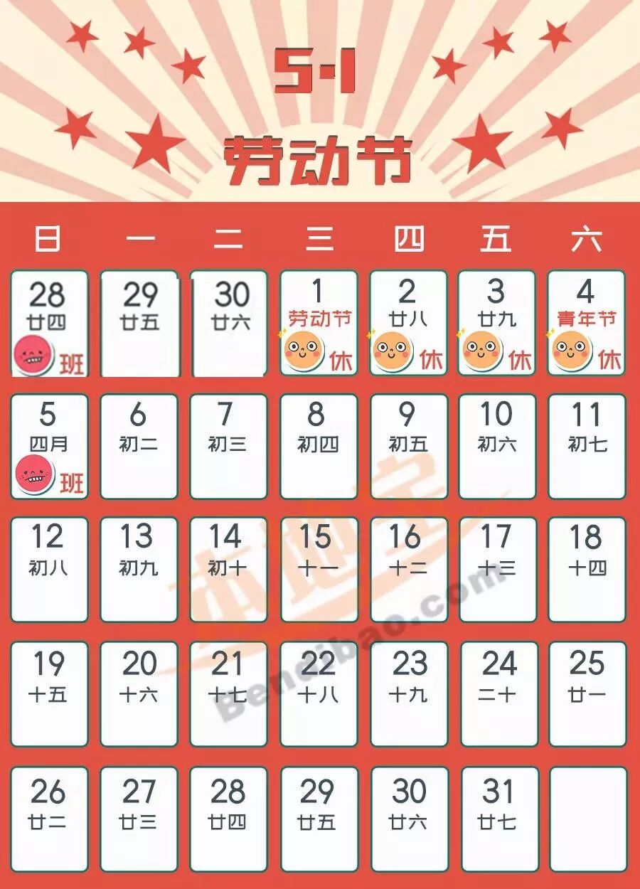 五一假期放假4天,其中调休2天!