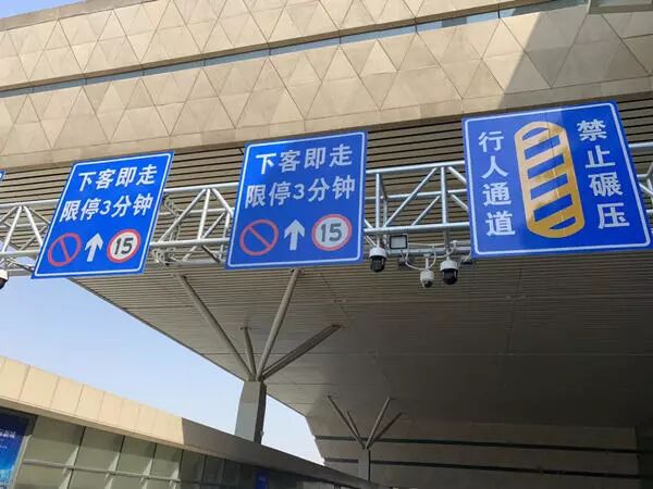 机场辖区主要道路“全路段禁停,违停自动抓拍”。