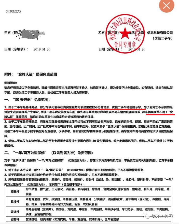 优信很明确的表示,他们在和消费者签订的购车合同中,就已经明确规定:优信不对二手车真实里程数负责。