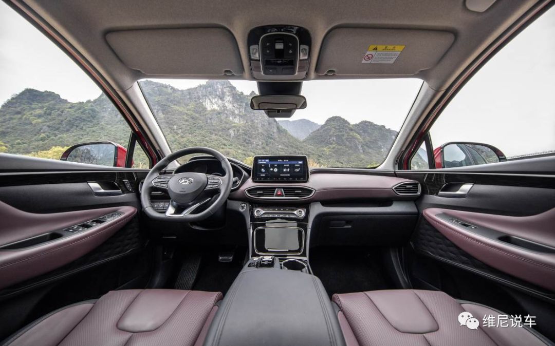 超大倾瀑式进气格栅加上分体式LED大灯的组合动感且不失灵动。视线上移,格栅上方新增雕刻式装饰饰条将两侧犀利的日间行车灯完美相连,让前脸更加协调,呈现出宽阔而富有活力的姿态。其连接处发出向后方延展的线条,让视线向后延展,塑造出标志性的修长引擎盖。转眼侧面,短前后悬设计配以贯穿车身的流畅腰线,动感形象呼之欲出。搭配19英寸双色五幅运动轮毂和宽大的矩形轮拱,让刚毅的气质尽显。而车尾部分作为本次造型的亮点之一,以造型独特的贯穿式LED尾灯、独具格调的“SANTA FE”英文标识和双边单出镀铬排气打造出立体硬派的车尾形象。
