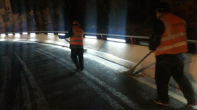 寒夜120名除雪人员上路清扫,捍卫城市畅通