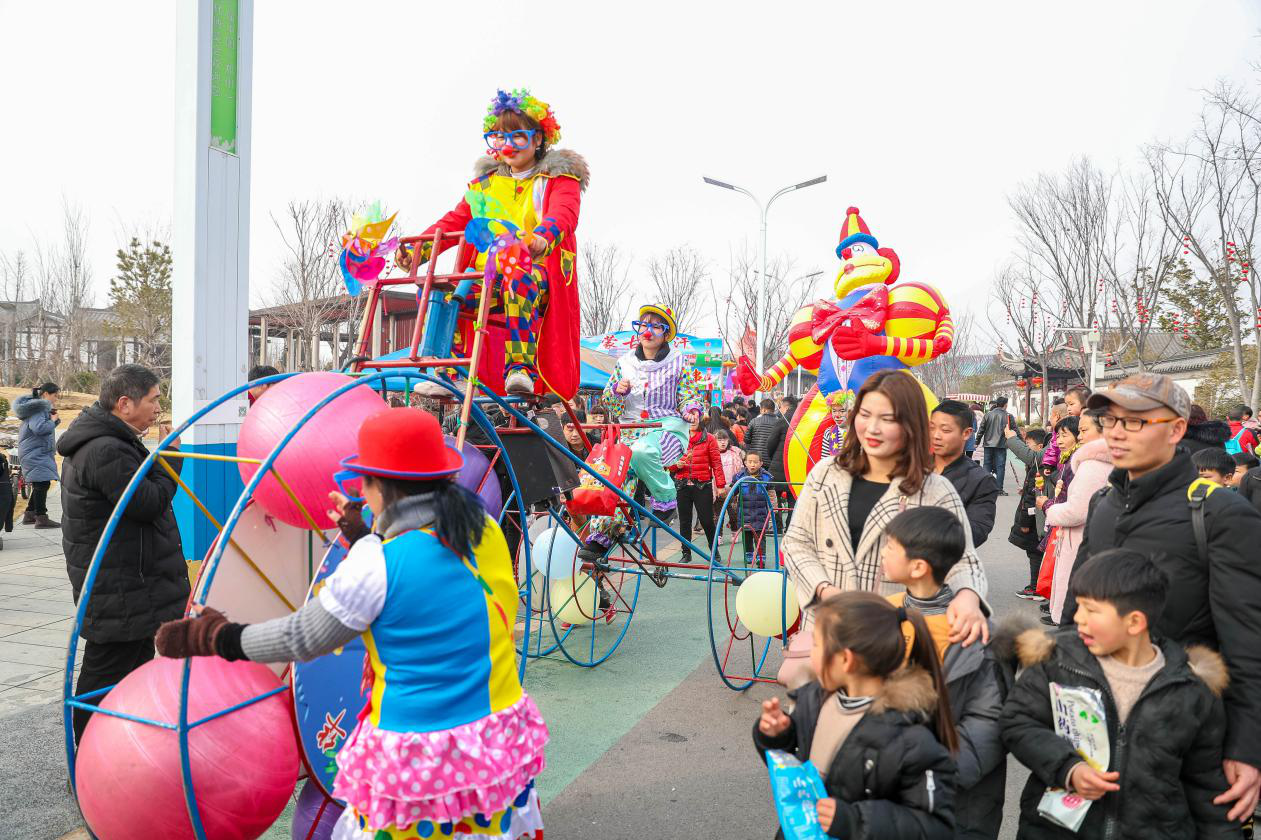 划旱船、踩高跷、舞长龙等传统民俗表演在园区轮番上演,小丑嘉年华巡游、憨态可掬的皮卡丘互动,非常受小朋友们的欢迎,《九州同庆中国年》、《盛唐欢歌》、《大红灯笼高高挂》等歌舞演出,经典豫剧、汉服茶艺、琵琶弹奏、吉他弹奏、曲艺相声、川剧变脸等文化演艺都受到广大游客的热烈欢迎。最吸引游客的还是国家非物质文化遗产项目“打铁花”,由热播剧《延禧攻略》打铁花团队亲自操作,击打后的铁花似雨倾泻而下,又似繁花朵朵绽放,炫彩夺目,好评如潮。