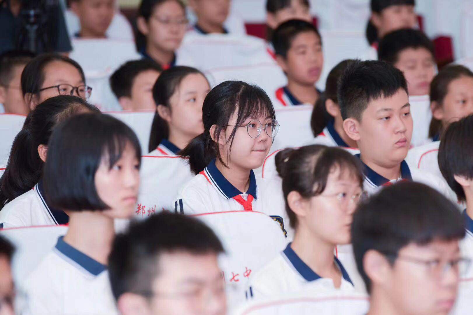 9月2日上午十点,伴随着雄壮激昂的国歌,鲜艳的五星红旗在郑州七中初中部校区上空冉冉升起,由共青团郑州市委主办、郑州七中承办的“我与祖国共奋进——国旗下的演讲”特别主题团日活动正式拉开帷幕。