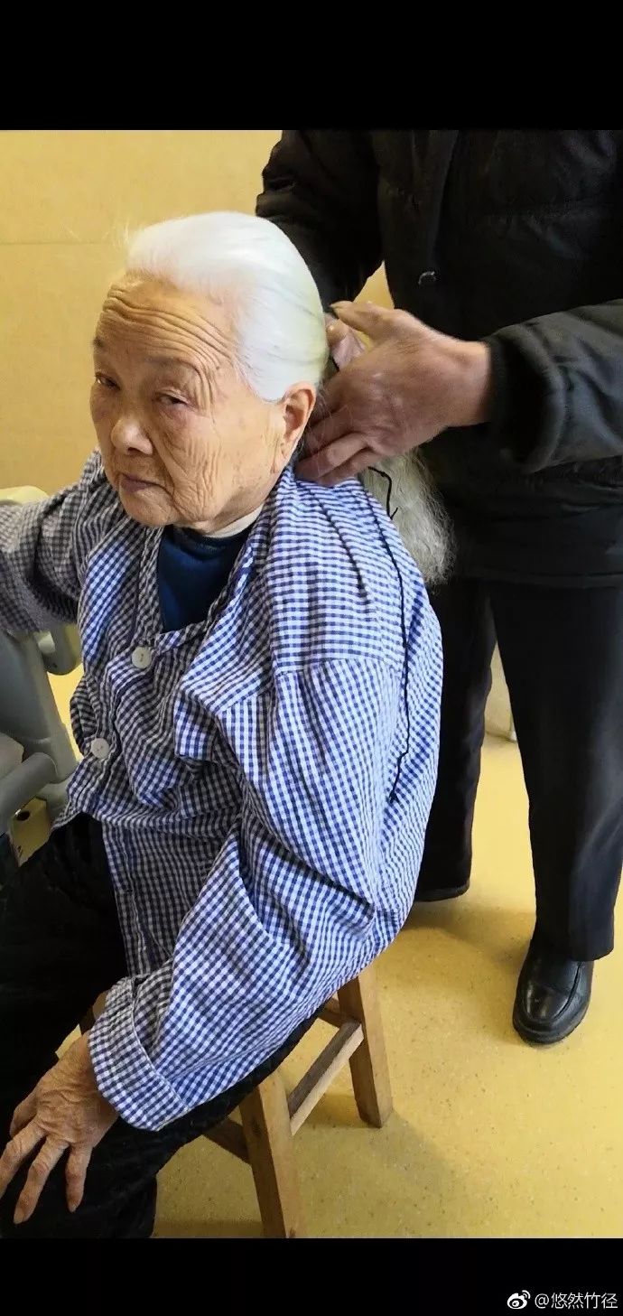 当时老爷子正拿着梳子给奶奶扎头发