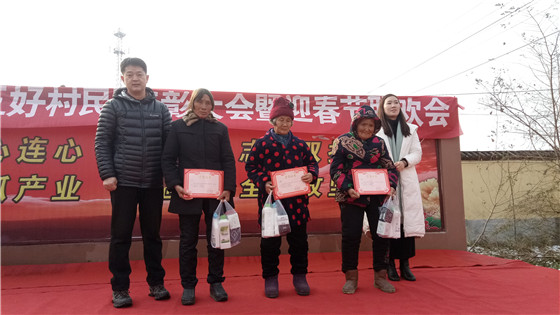 表彰会上,8名好媳妇、3名好婆婆、2名贫困户致富人,5名光荣脱贫户和2名热心公益的个人、2个热心公益的集体,以及5名希望之星受到表彰。刘庄村驻村第一书记刘先权和村党支部书记、主任郝松广分别为获奖集体和个人颁发了奖品和证书。