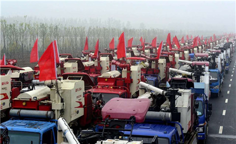 驻马店市农机局、汝南县农机局、部分服务行业负责人及参加跨区作业的500多名农机手共同参加出征仪式。