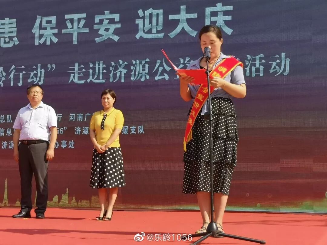 为深入开展“防风险除隐患保平安迎大庆”消防安全专项行动,全力做好庆祝新中国成立70周年消防安保工作,8月15日上午,由河南省消防救援总队、河南省民政厅、河南广播电视台主办,河南广播电视台信息广播携手济源市消防救援支队、济源市民政局联合承办的河南省“消防安全•乐龄行动”走进济源公益宣传活动在济源市济水苑社区举行。