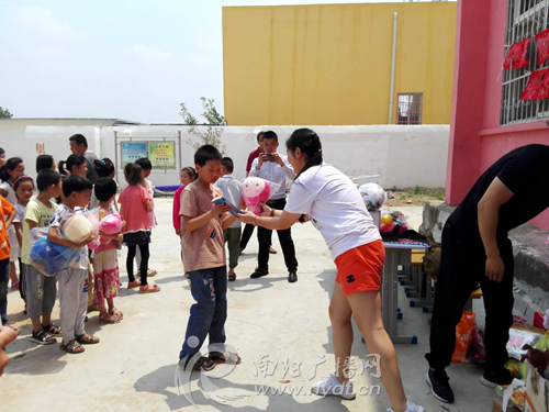 5月16日,南阳电台城市广播&新田360广场“小愿望大梦想”公益小分队来到唐河县两所小学,为145名儿童送去了书包、玩具和蛋糕等物品,陪他们度过了愉快的时光。